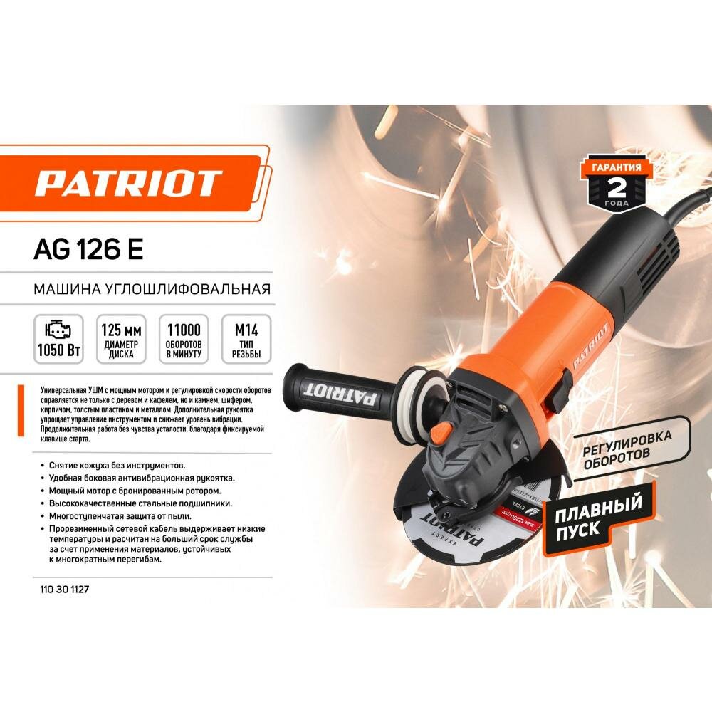 Patriot 110301127 AG 126E, тонкий корпус, пылезащищенная. Вт, Диск 125 мм