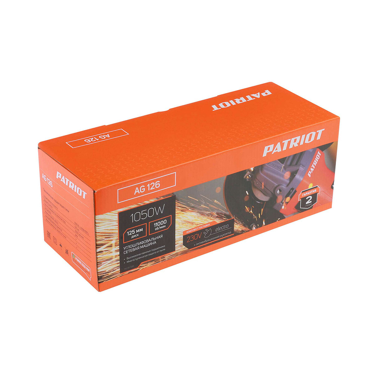 Машина углошлифовальная сетевая (УШМ) PATRIOT AG 126E, 1050Вт, диск 125мм