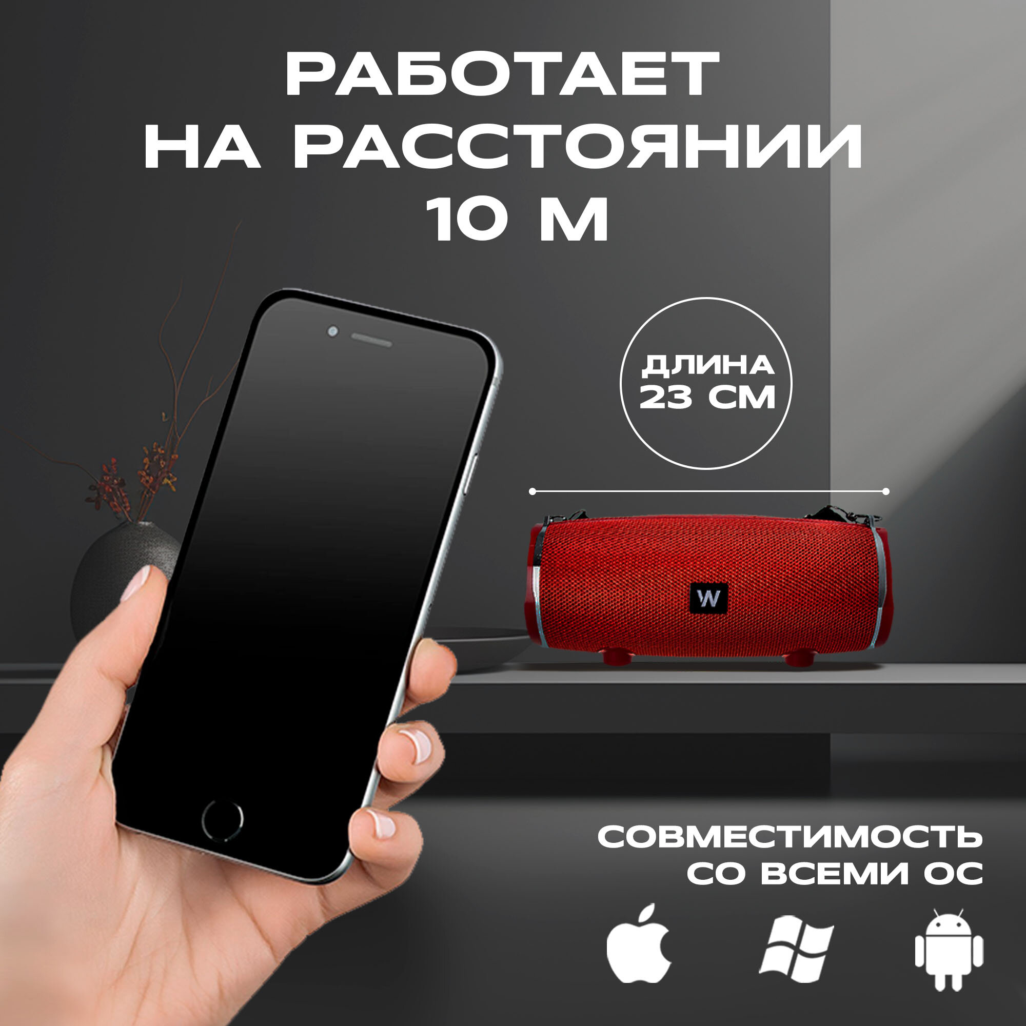 Беспроводная портативная колонка Bluetooth, WALKER, WSP-160, красная, музыкальная переносная акустическая система блютуз для компьютера и телевизора