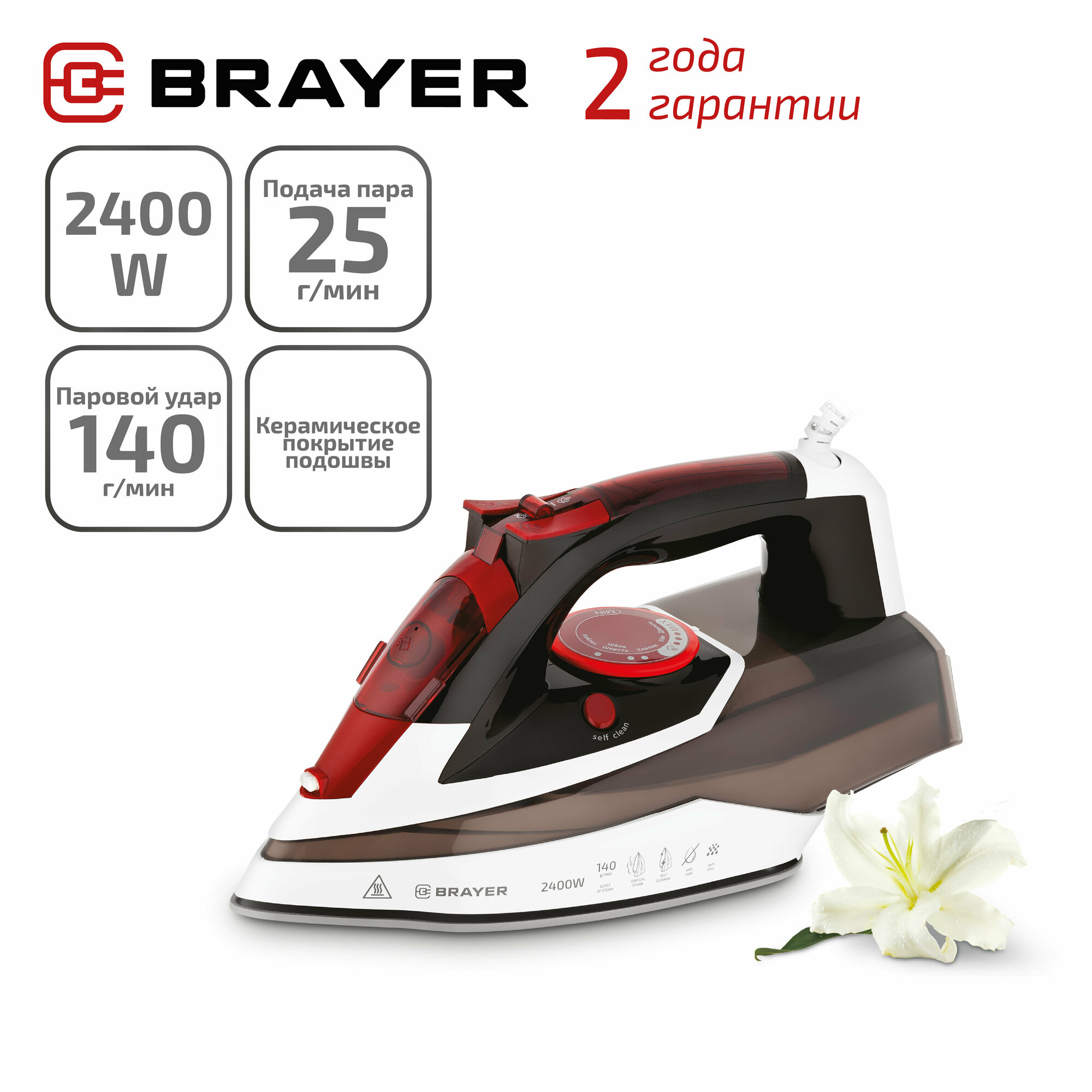 Утюг BRAYER BR4005, 2400 Вт, керамическое покрытие, самоочистка, антикапля, антинакипь, автоотключение, коричневый, 456113