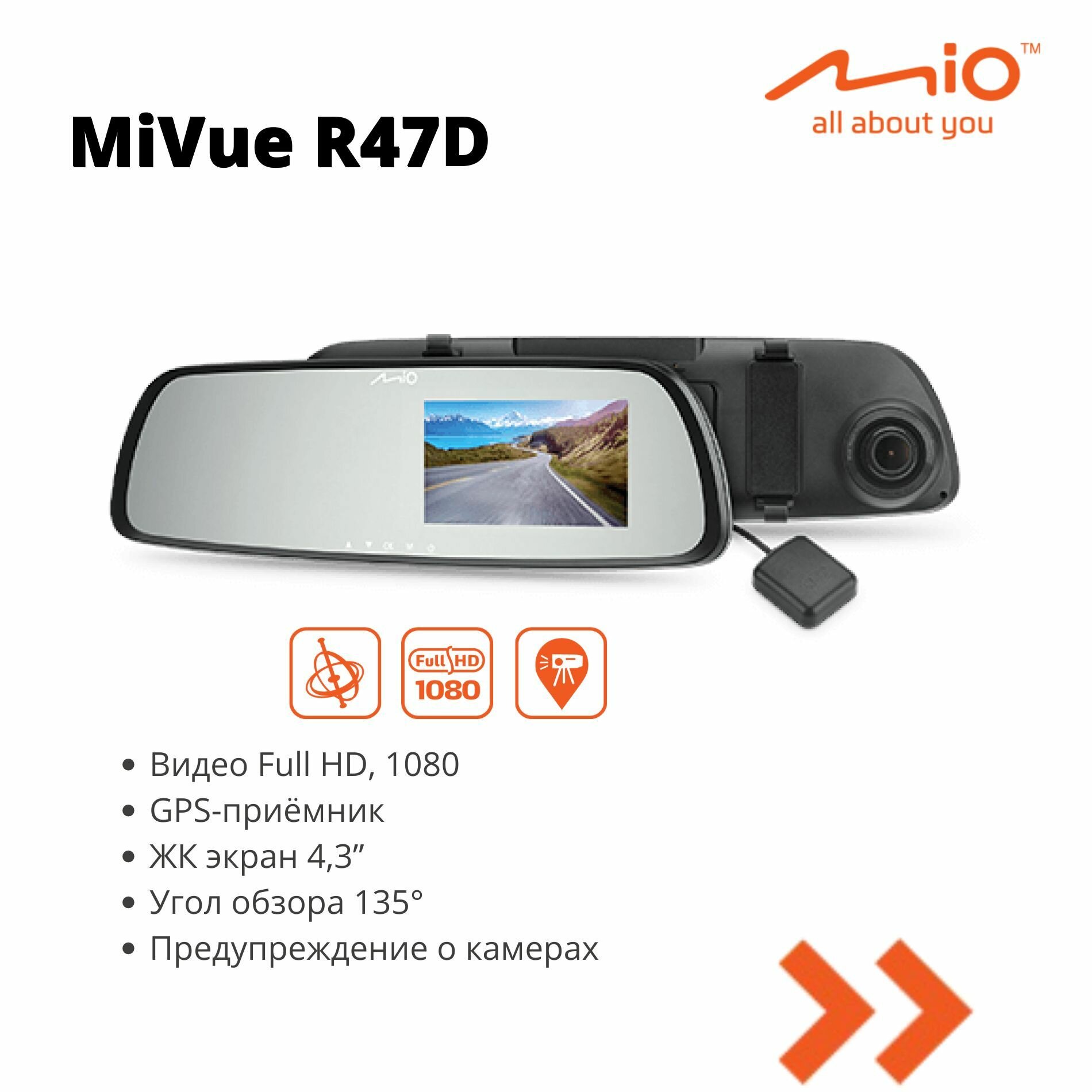 Видеорегистратор Mio R47D, автомобильный, с GPS, FullHD, G-sensor, 4.3", камера заднего вида, предупреждение о камерах, камера заднего вида