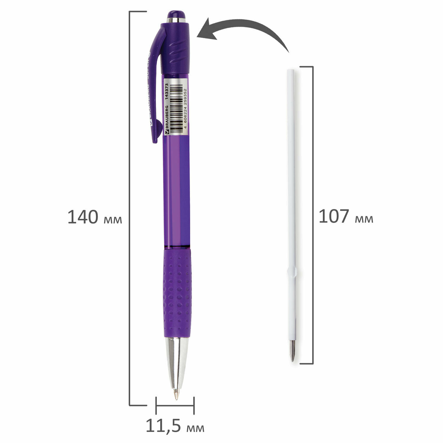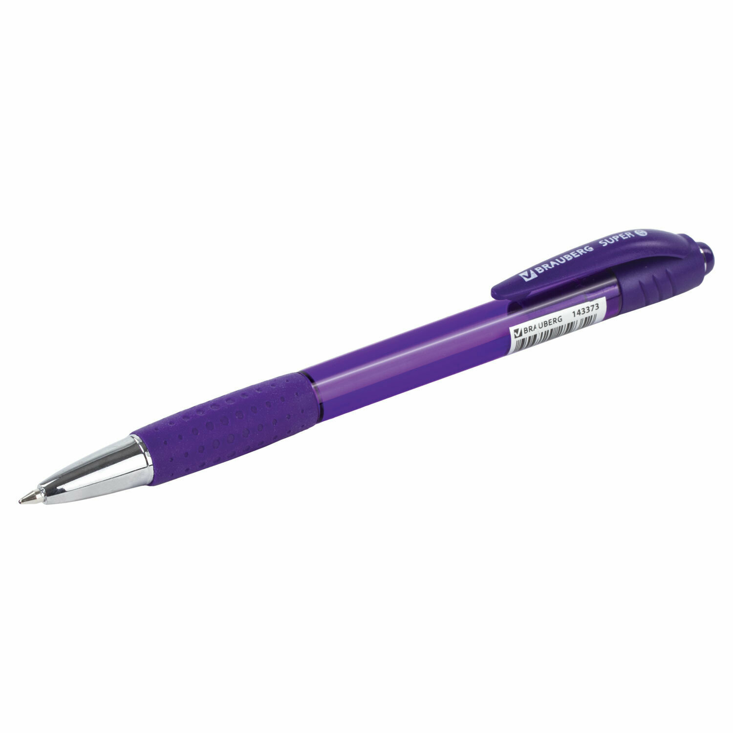 Ручка шариковая автоматическая с грипом BRAUBERG SUPER, синяя, корпус фиолетовый, узел 0,7 мм, линия письма 0,35 мм, 143373 Набор 12шт.