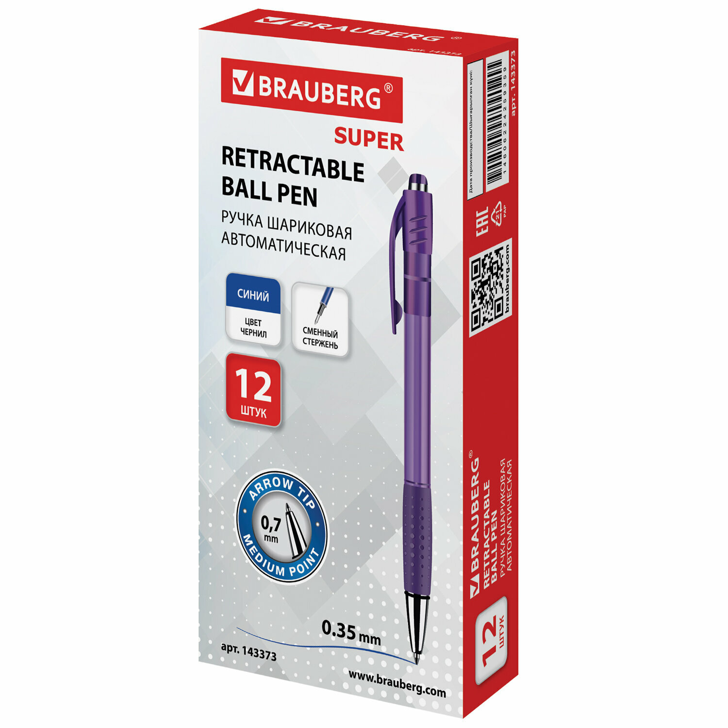 Ниже Вы можете прочитать отзывы на Ручка шариковая автоматическая 12 шт синяя, с грипом BRAUBERG SUPER корпус фиолетовый, линия письма 0,35 мм, 1 упаковка, ознакомится с подробными характеристиками, посмотреть интересные обзоры и фотографии на Ручка шариковая автоматическая 12 шт синяя, с грипом BRAUBERG SUPER корпус фиолетовый, линия письма 0,35 мм, 1 упаковка.