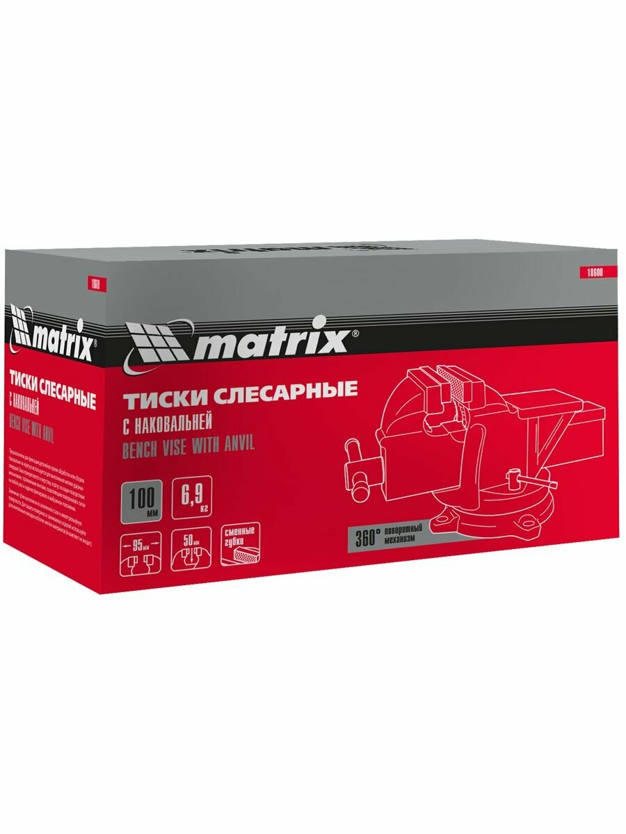 Тиски слесарные, 100 мм, поворотные, с наковальней Matrix [18600]