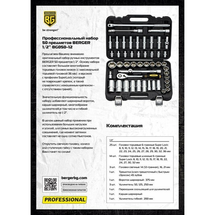 Универсальный набор инструментов BERGER 50 предмета 1/2 «мёрс» BG050-12