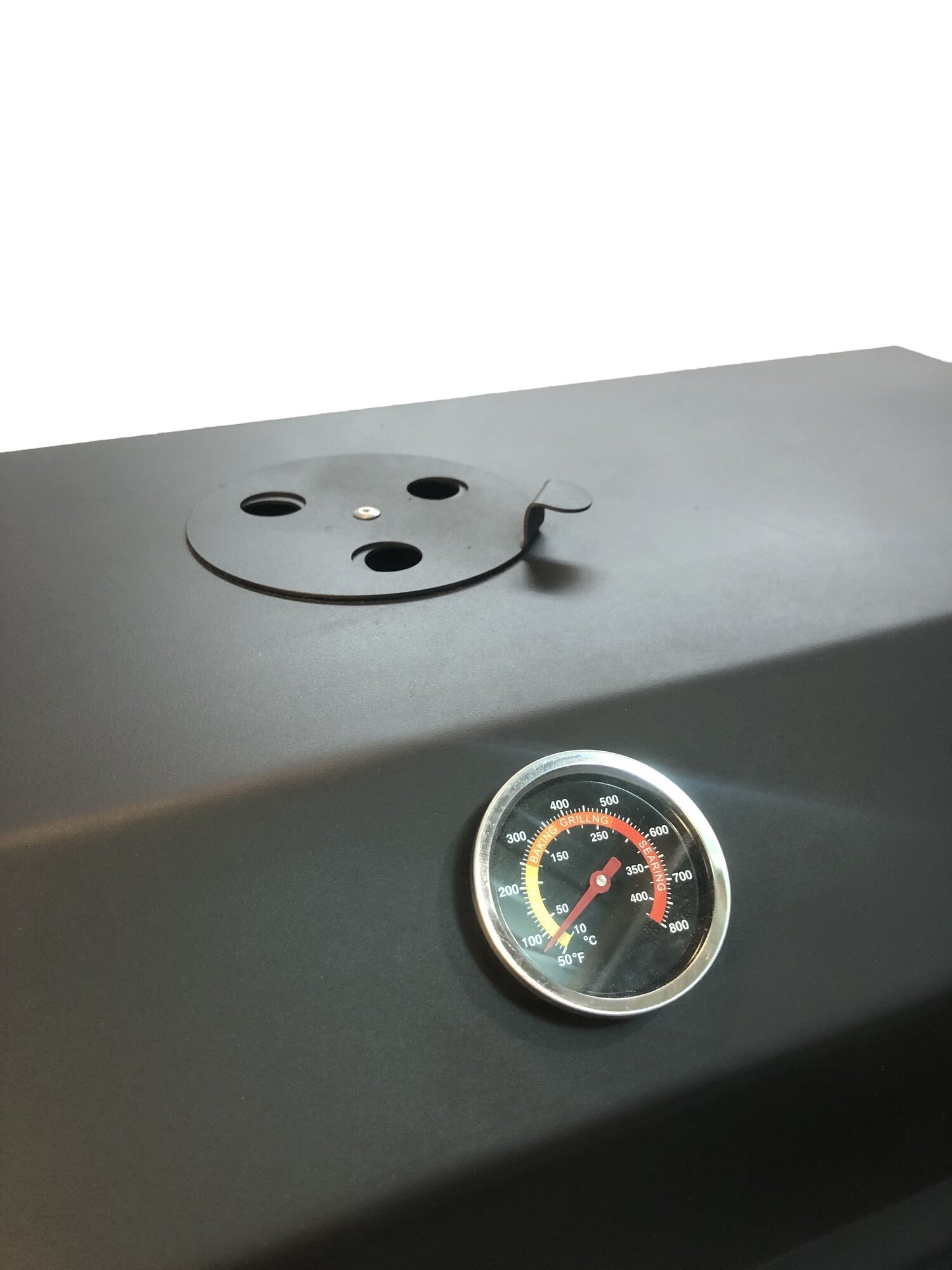 Мангал - барбекю передвижной с крышкой, термометром, решеткой и двумя боковыми полками "Премиум-Элит-02"