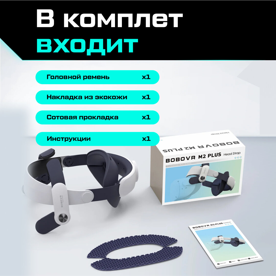 | Комплектация | Крепление BOBOVR M2 PLUS, оголовье, сотовые накладки, документация |