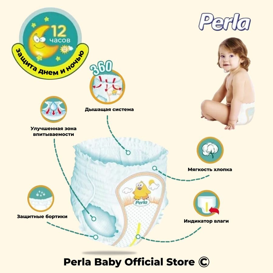 Детские подгузники-трусики Perla Pants Junior для малышей 11-25 кг, 5 размер, 40 шт памперсы-трусики для девочек и для мальчиков одноразовые