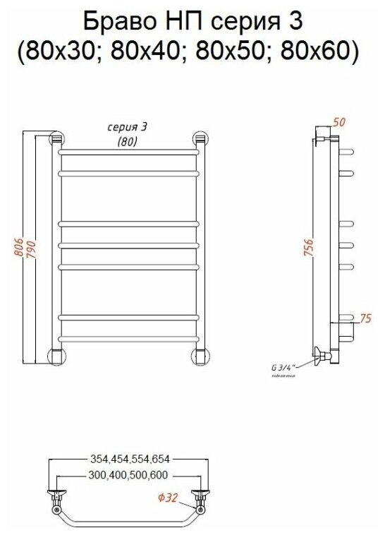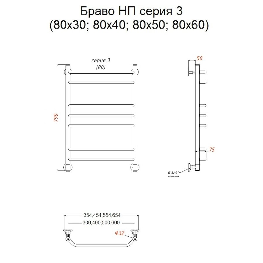 Купить Полотенцесушитель Браво НП 3 80*50 (ЛЦ4)