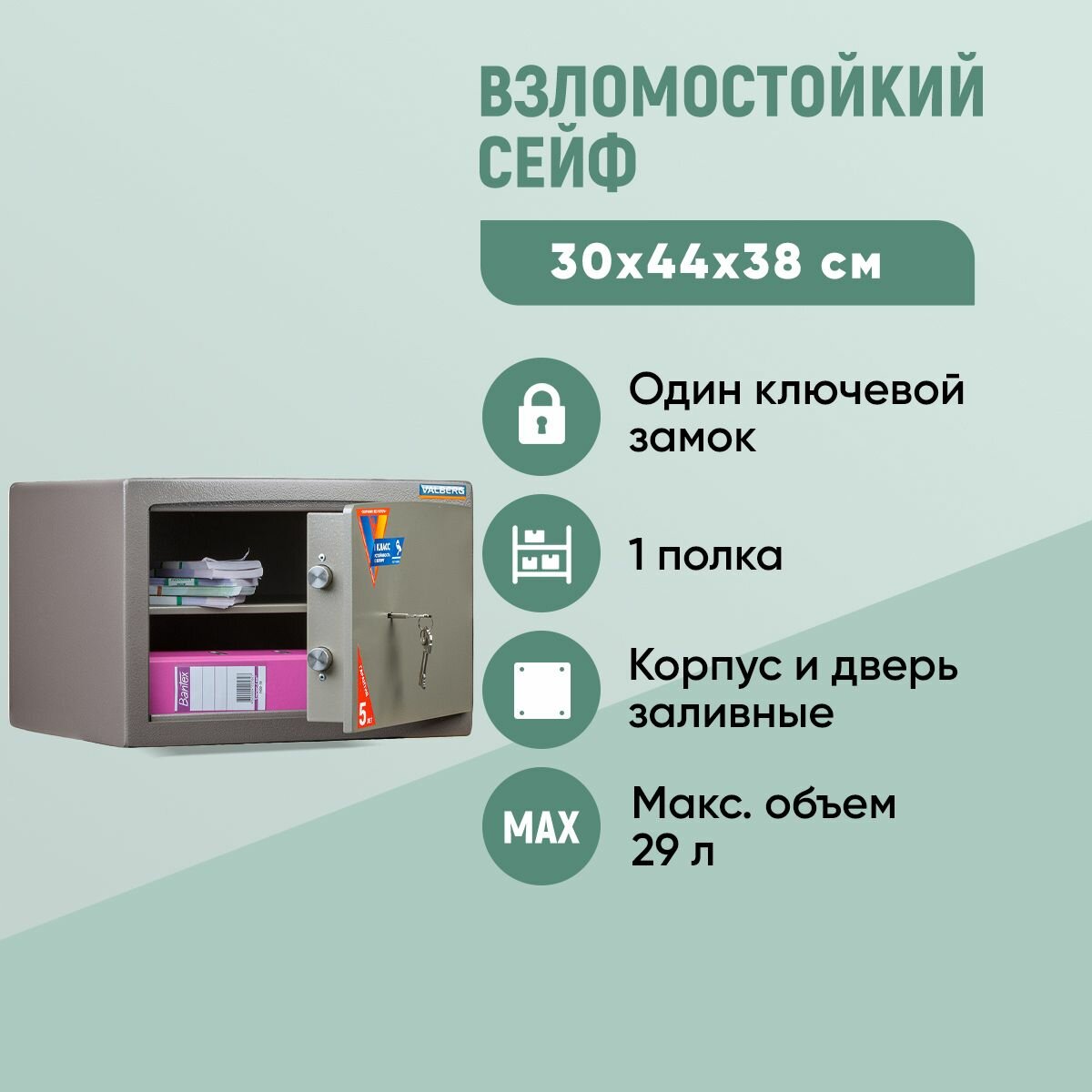 Сейф для денег и документов, взломостойкий VALBERG кварцит 30 EL, 300x440x430мм, 87кг, ключевой замок.