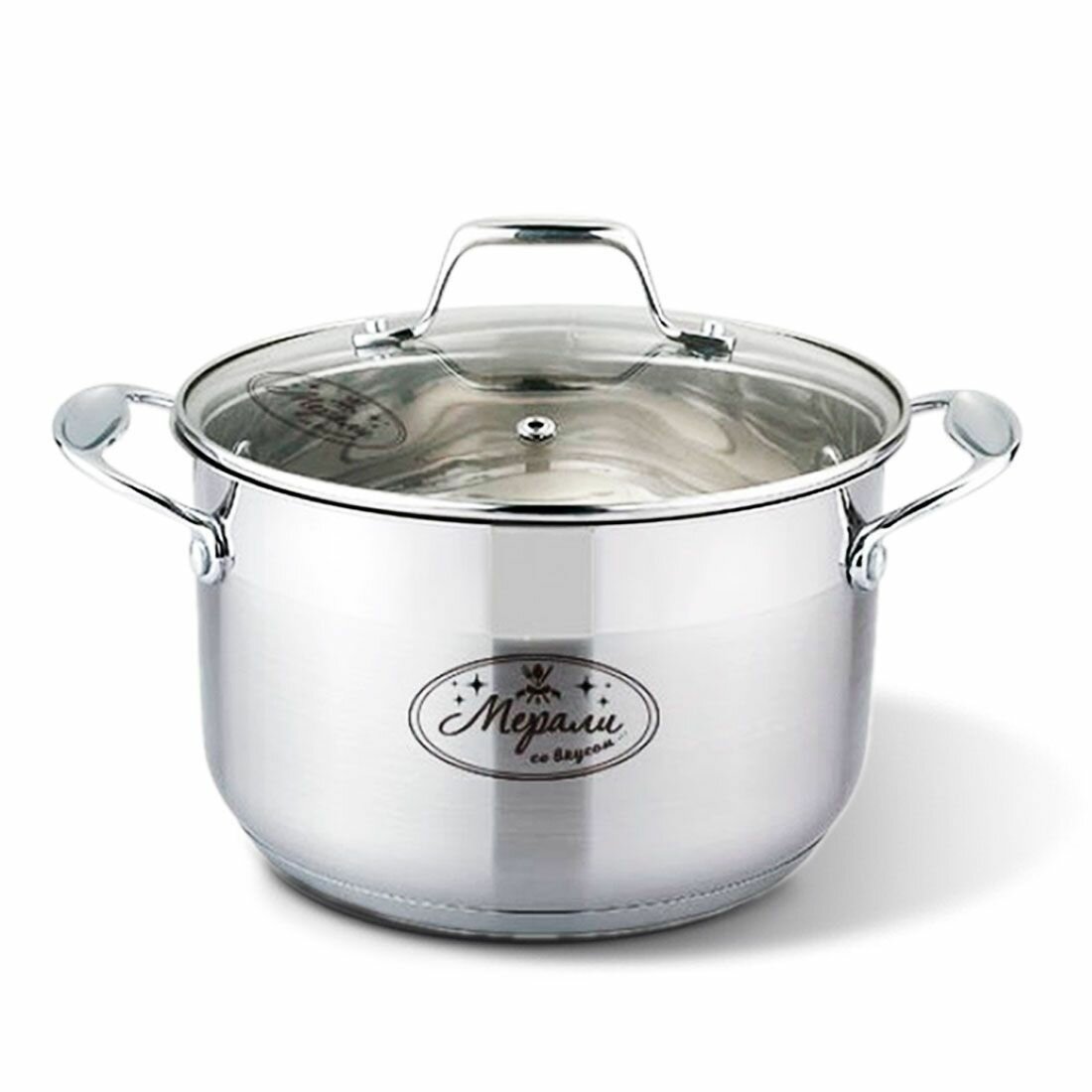 Кастрюля Мерали 4,8 л из нержавеющей стали со стеклянной крышкой для всех видов плит