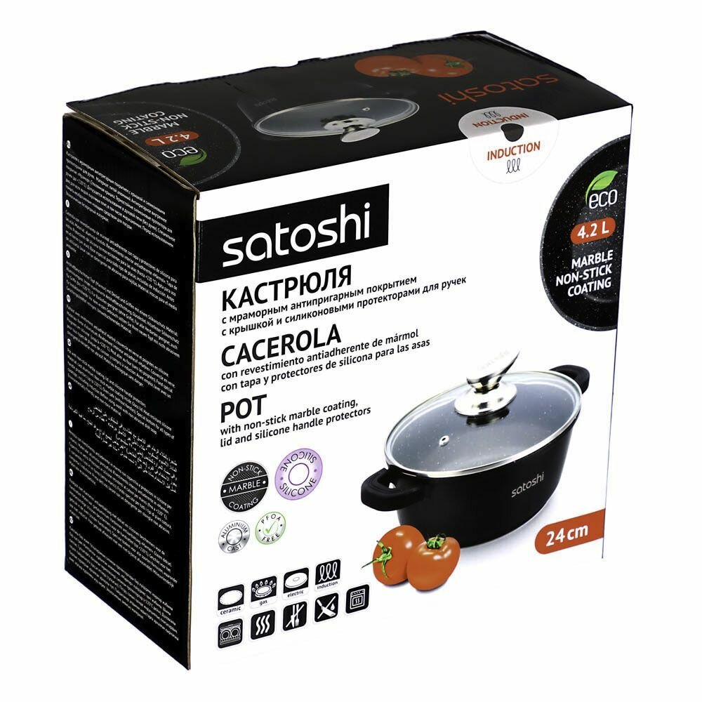 Купить Кастрюля Satoshi 4,2 л с крышкой, антипригарное покрытие, индукция