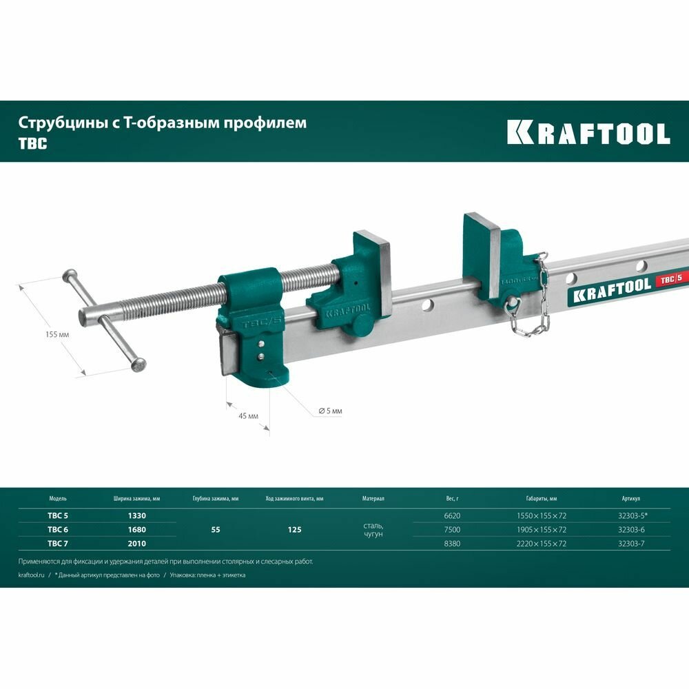 KRAFTOOL TBC/7 2000/55 мм, Струбцина с Т-образным профилем (вайма) (32303-7)