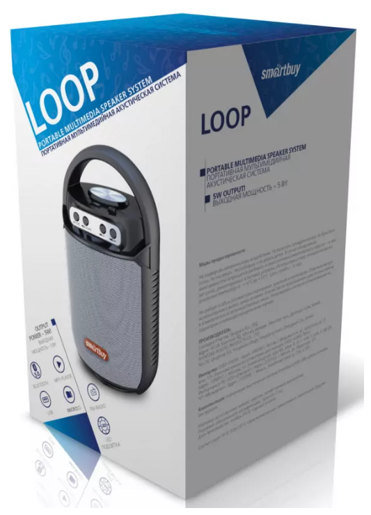 Ниже Вы можете прочитать отзывы на Акустическая система Smartbuy LOOP, 5Вт, Bluetooth, MP3, FM-радио (арт. SBS-5030)/50, ознакомится с подробными характеристиками, посмотреть интересные обзоры и фотографии на Акустическая система Smartbuy LOOP, 5Вт, Bluetooth, MP3, FM-радио (арт. SBS-5030)/50.