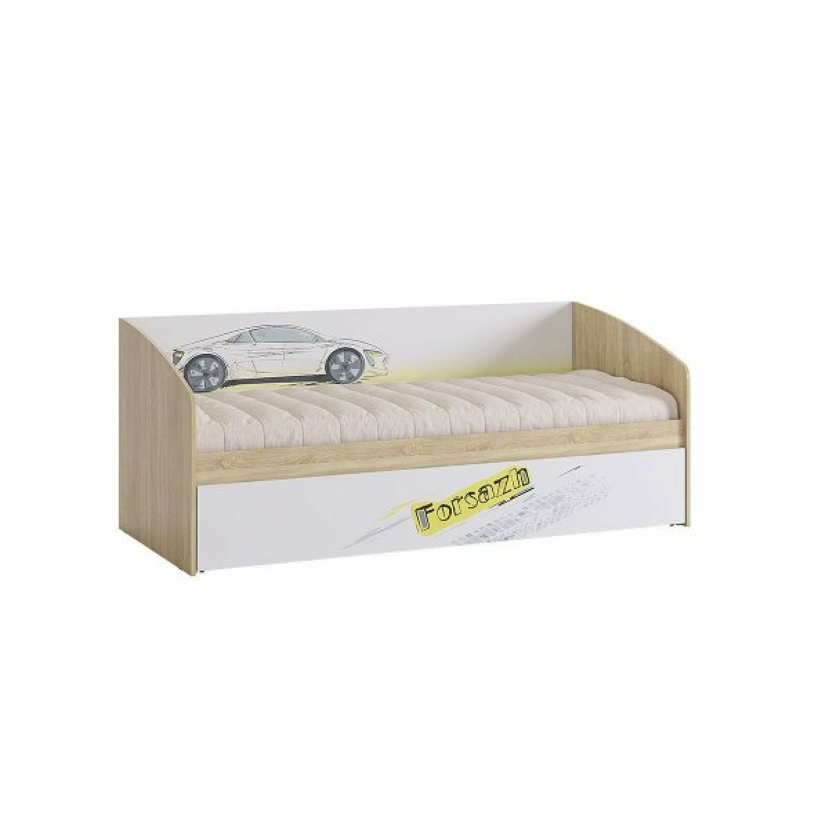 Детская кровать Форсаж 80х200 см, с дополнительным спальным местом, с ящиком, Дуб Сонома / Белый