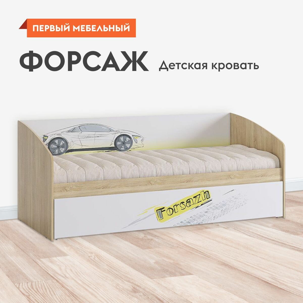 Детская кровать МебельСон Форсаж Дуб Сонома / Белый Без бортика