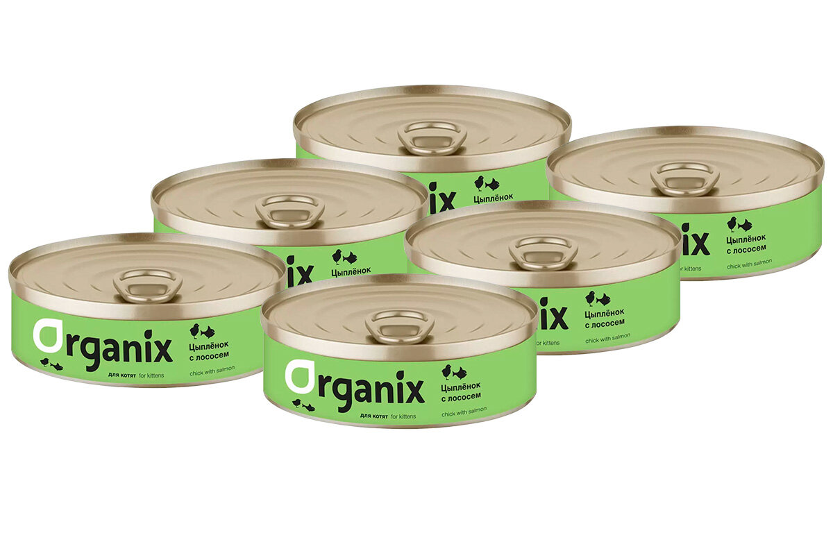 Купить ORGANIX для котят цыпленок с лососем банка 100 гр NEW 100 гр х 6 шт