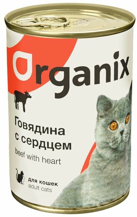 Корм влажный Organix для кошек говядина с сердцем, 410 г