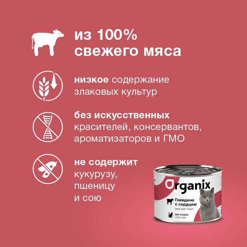 ORGANIX Консервы д/кошек c Говядиной и Сердцем