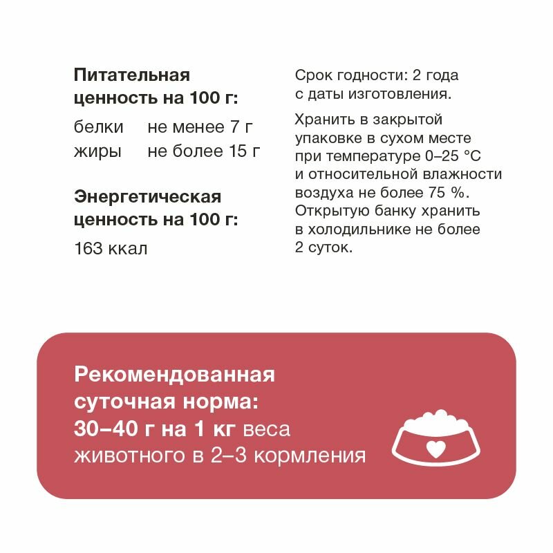 | Состав | говядина, сердце свиное, печень свиная, масло растительное, стабилизаторы Е471, Е472с, вода |
