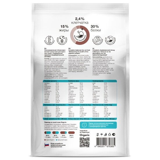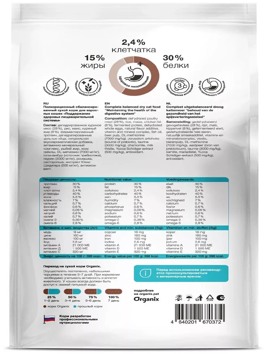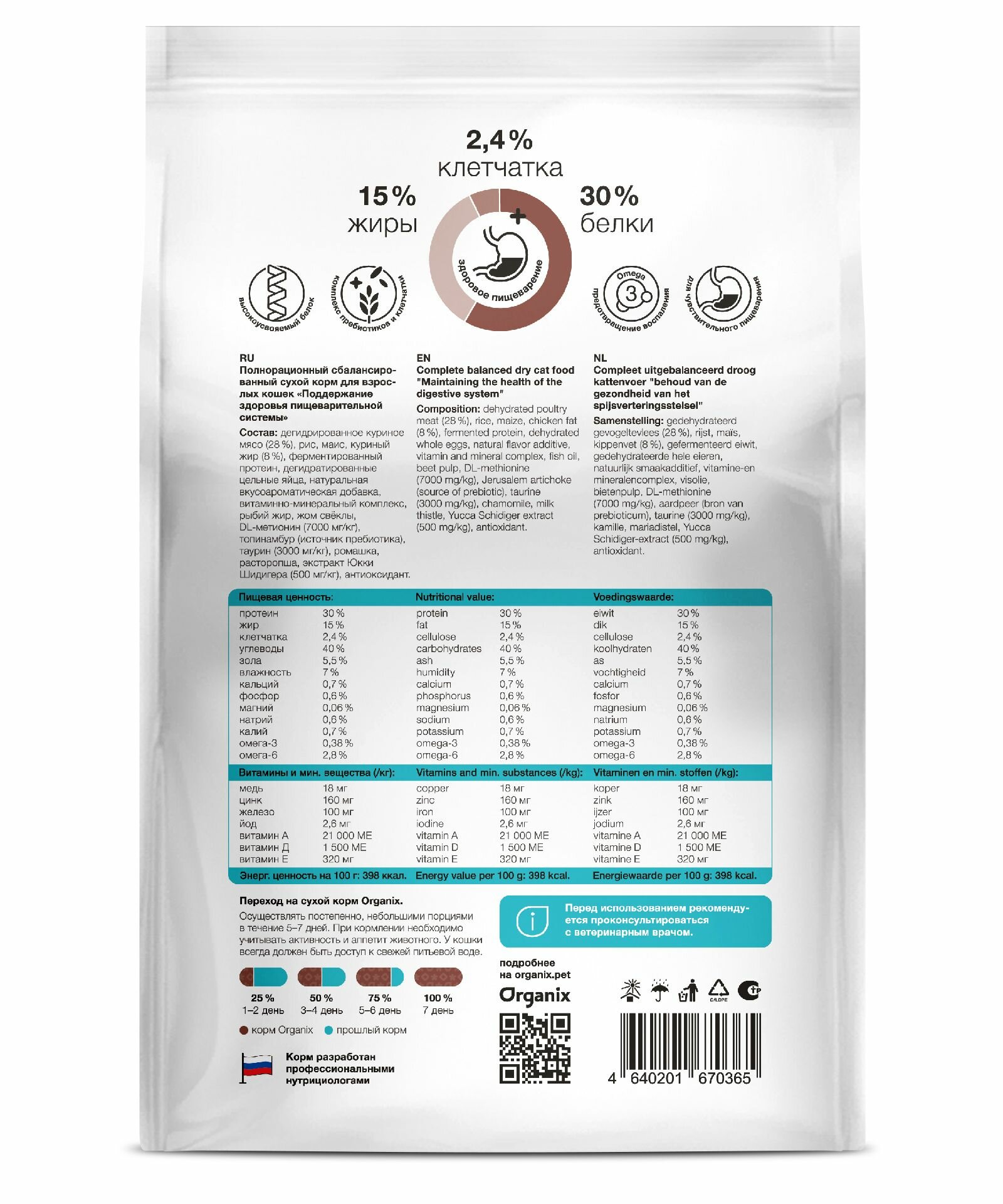 Cухой корм Organix Preventive Line для кошек "Поддержание здоровья пищеварительной системы", 2 кг