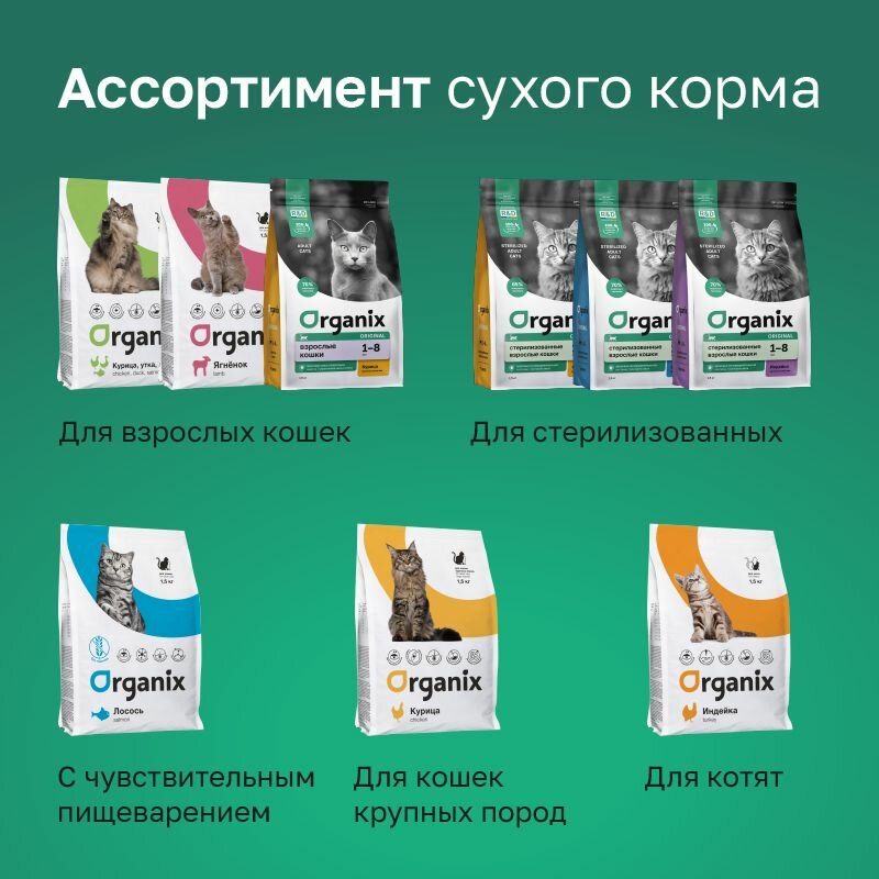 ORGANIX ORIGINAL ADULT CAT STERILIZED для взр кастр котов и стерилизов кошек с индейкой 1,5 кг