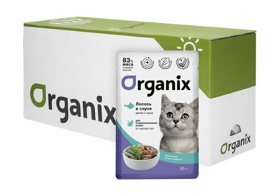 Купить Organix Паучи для стерилизованных кошек лосось в соусе 0.085кг 1шт. 0.085 кг