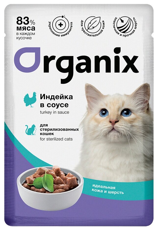 Купить Organix Упаковка 25 шт. Паучи для стерилизованных кошек "Идеальная кожа и шерсть": индейка в соусе, 85г*25 2.125 кг