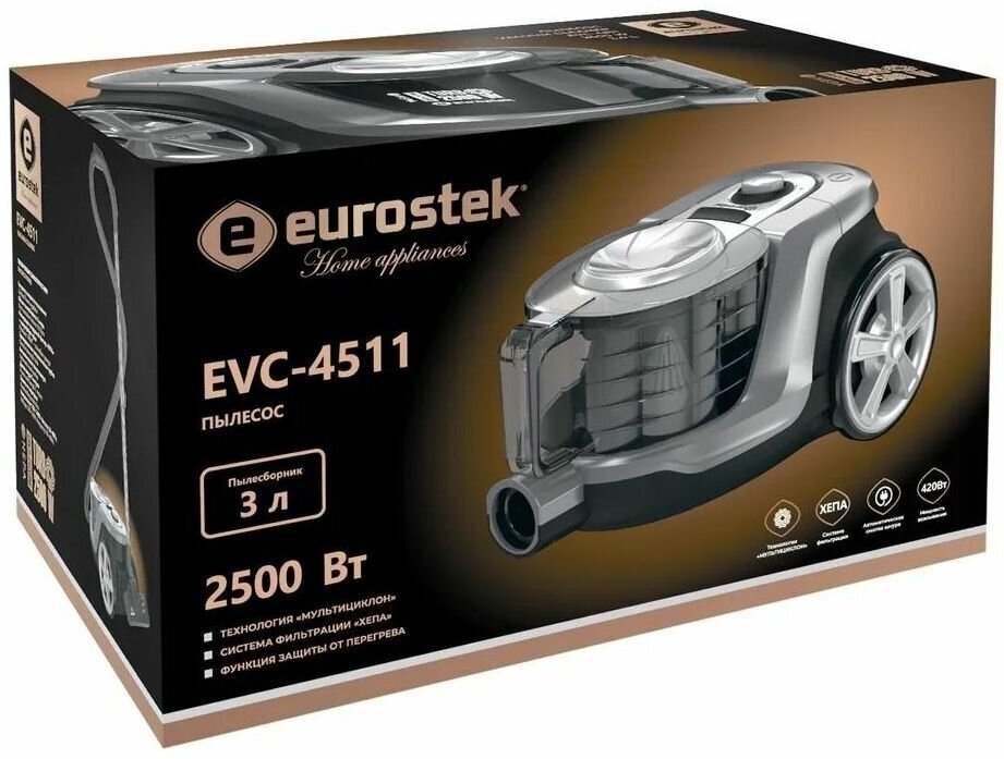 Пылесос Eurostek EVC-4511 (серебристый, 2500/420Вт, Мультициклон, Hepa+микрофильтр)