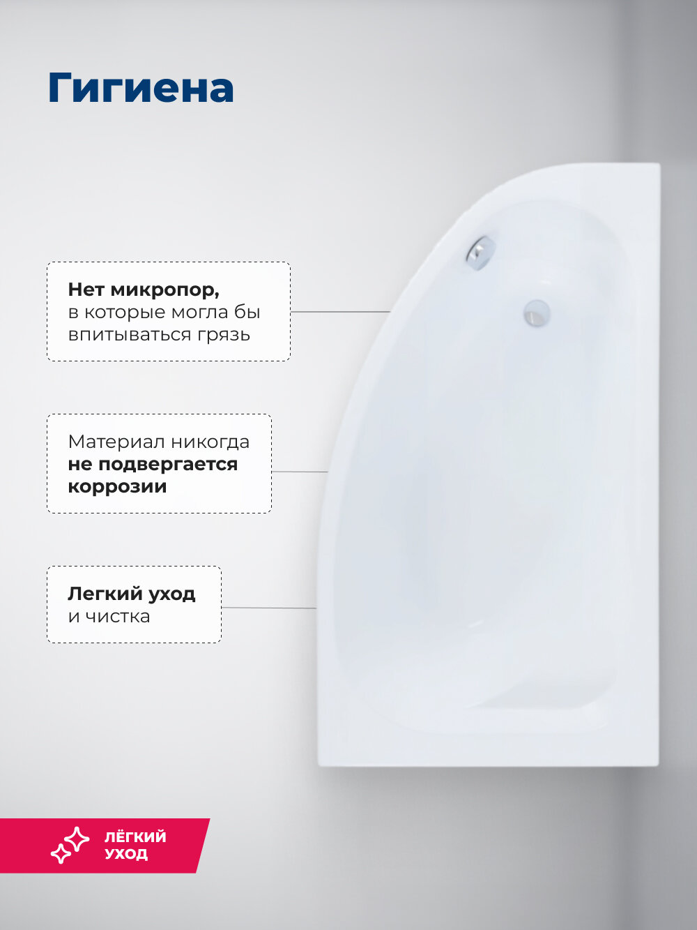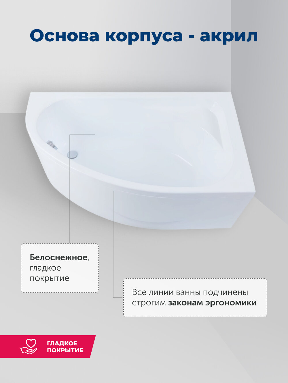 Акриловая ванна Aquanet Mia 140x80 R 246887 с каркасом, цвет Белый. интересное: