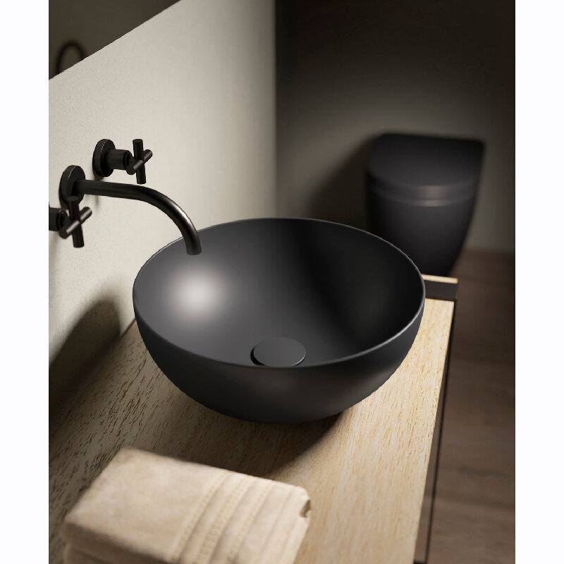 Раковина накладная HATRIA HAPPY HOUR A0Y1VF08, диаметр 40 см, без донного клапана, серая матовая интересное: