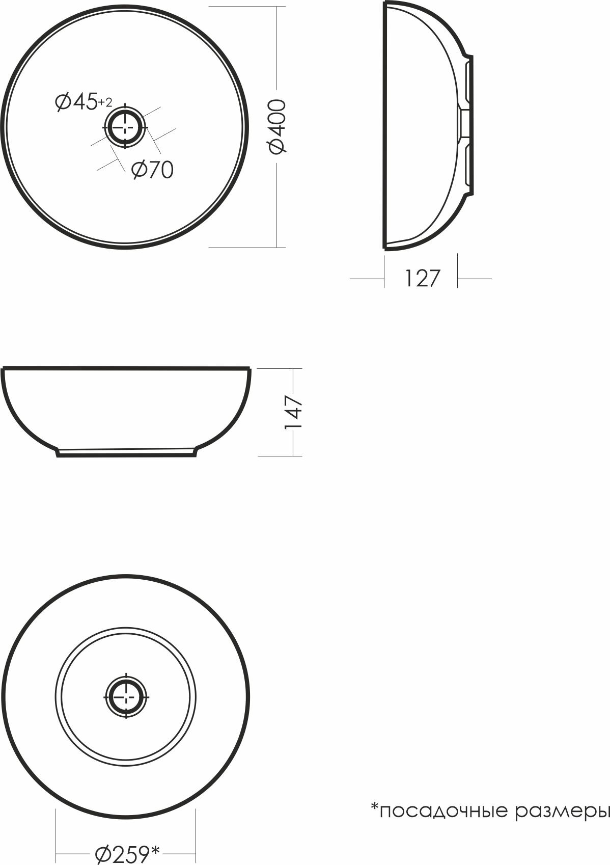 Раковина накладная Sanita Luxe Art Cut 40 WB.CT/Art/40-N.Cut/WHT.G/S1 белая