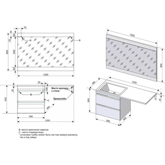 | Дополнительная информация | обратите внимание, раковина (с надстройкой на стиральную машину) не входит в комплект, продается только тумба как на первом фото, остальные фото представлены для демонстрации возможностей компоновки |