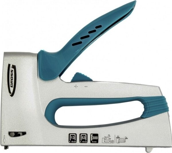 Степлер мебельный, алюминиевый корпус, регулировка удара, тип скобы: 13, 53, 300, 6-16 мм Gross ( 41002 )