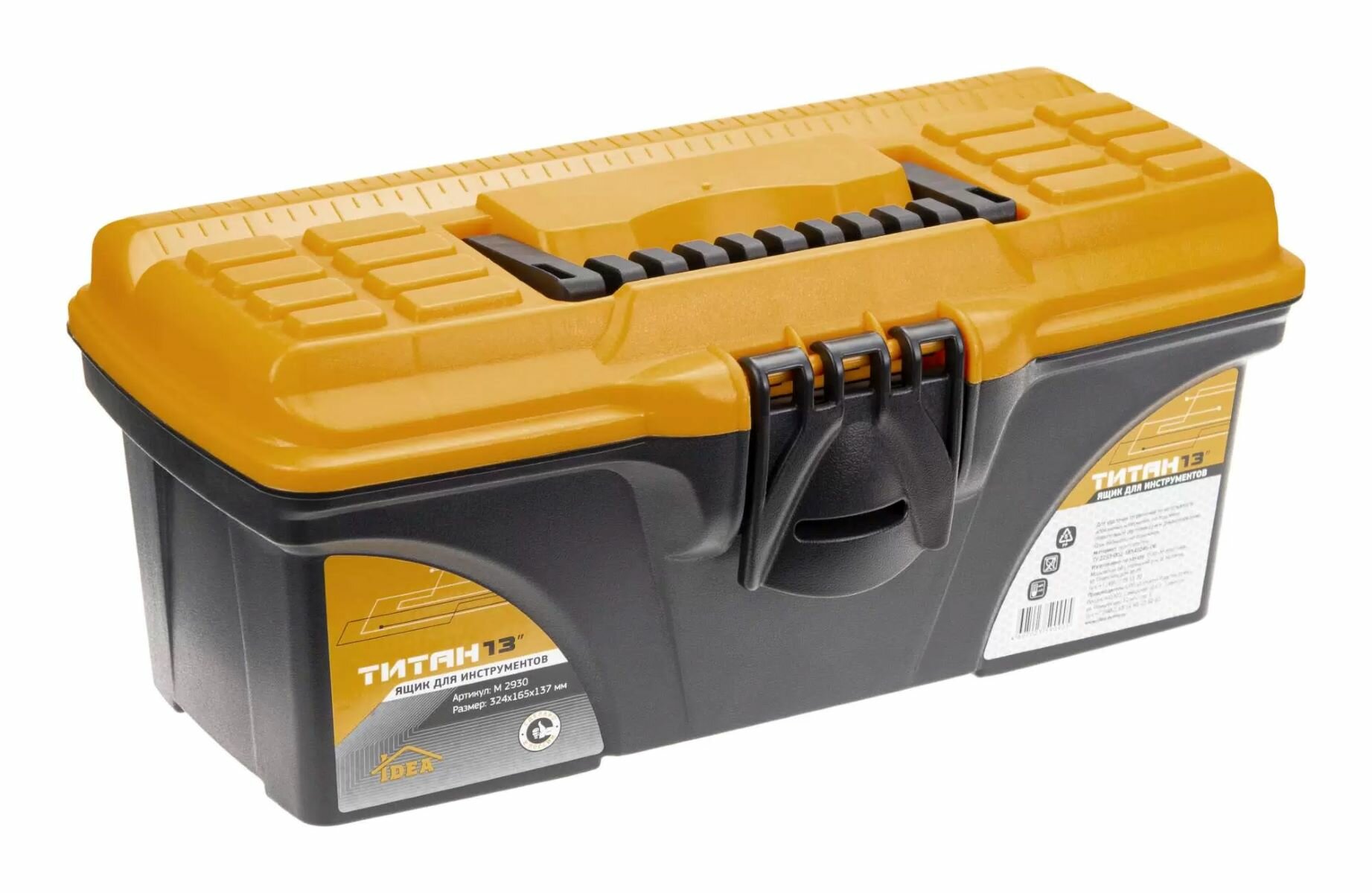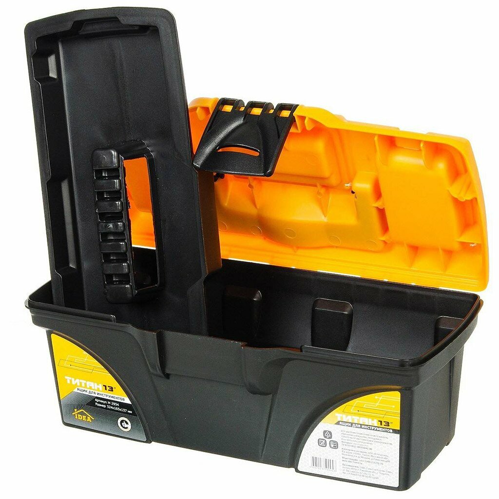 Ящик для инструментов титан 13" (с секциями) черный с желтым IDEA (М-Пластика) М2934
