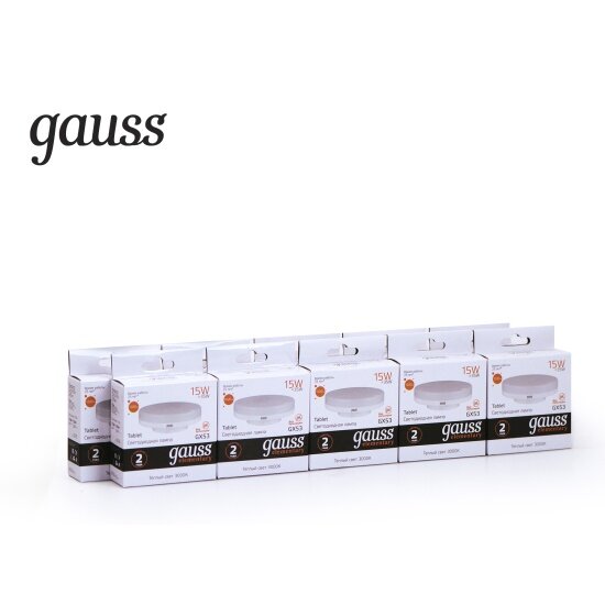 Лампочка светодиодная Gauss Elementary 15В эквивалент 125В 3000K 1020Лм GX53 таблетка 83815(комплект из 2 шт.)
