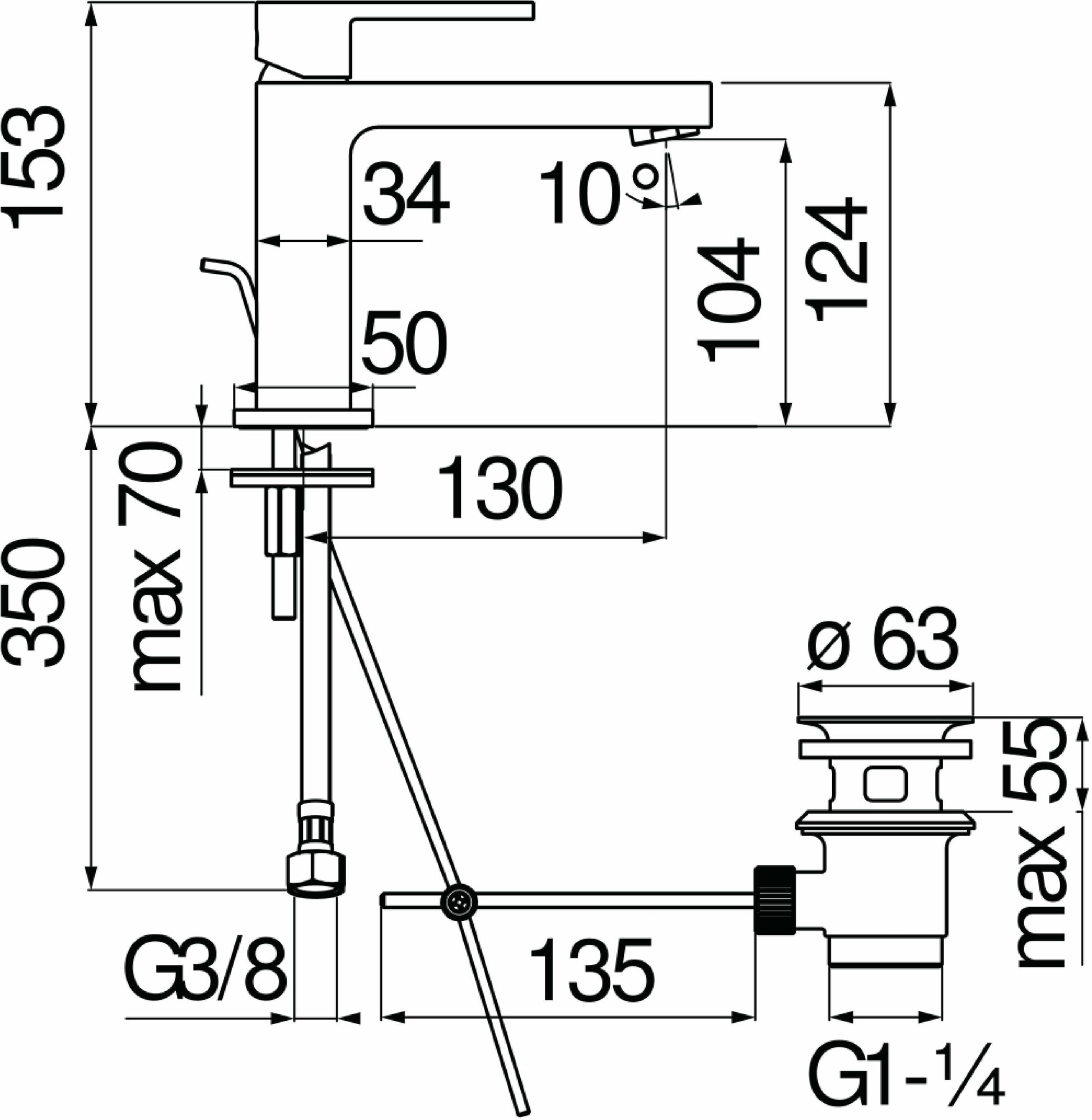 | Длина излива | 130 мм |