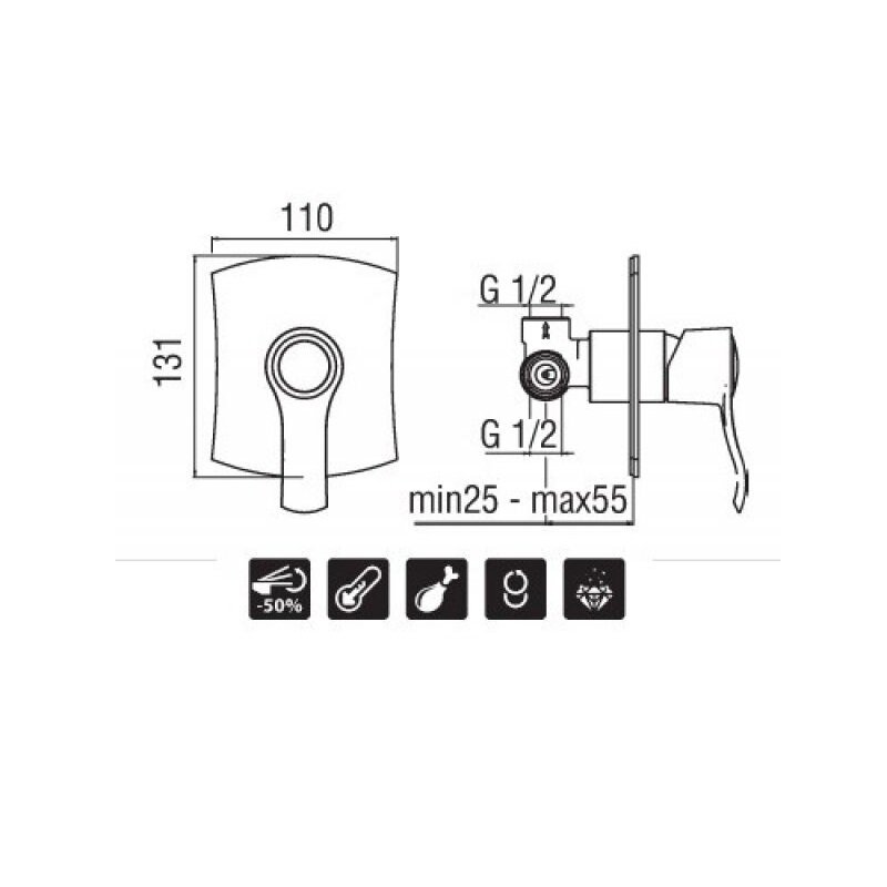 Смеситель для душа NOBILI SOFI SI98108CR (внешняя и скрытая часть)