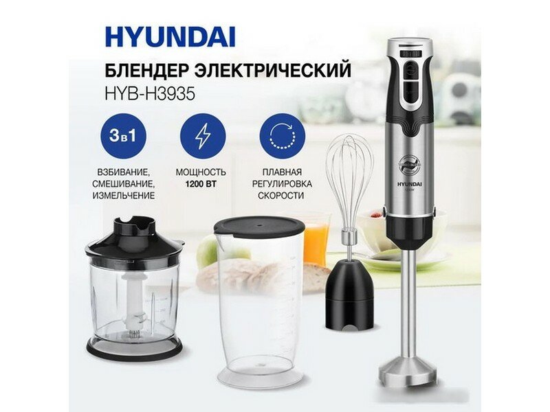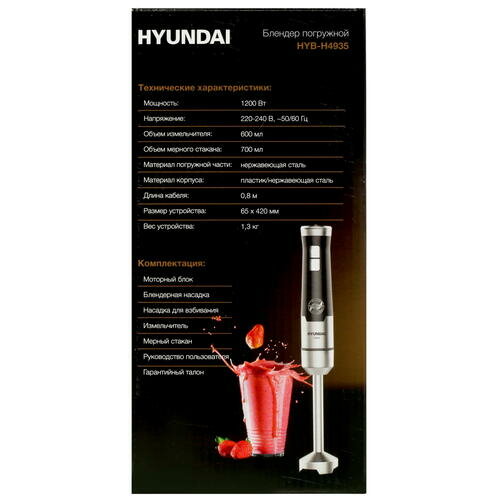 Блендер погружной HYUNDAI HYB-H4935 черный/серебристый