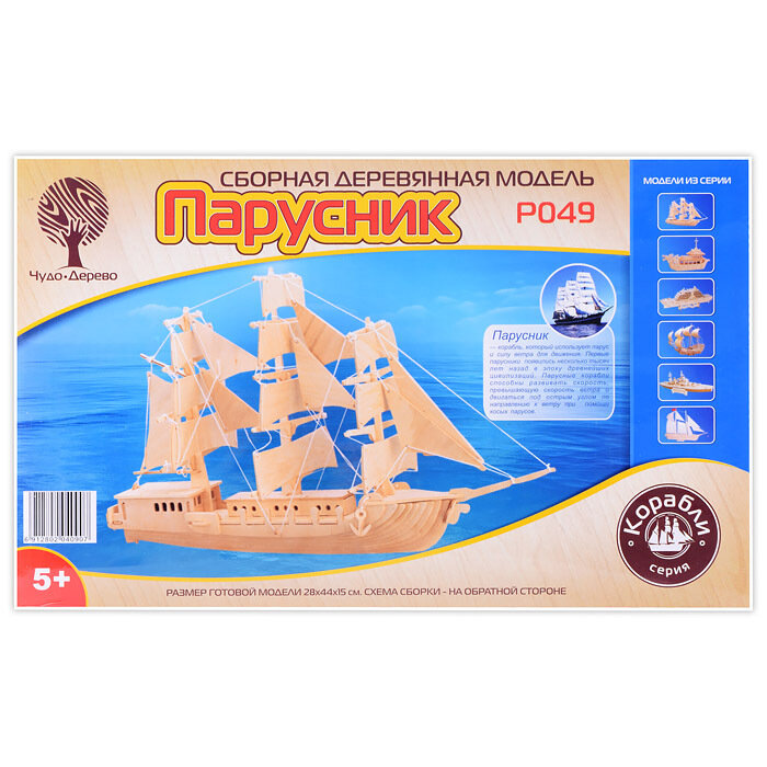 Модель деревянная сборная водный транспорт, "Парусник" (4 пласт.) Техпроект P049