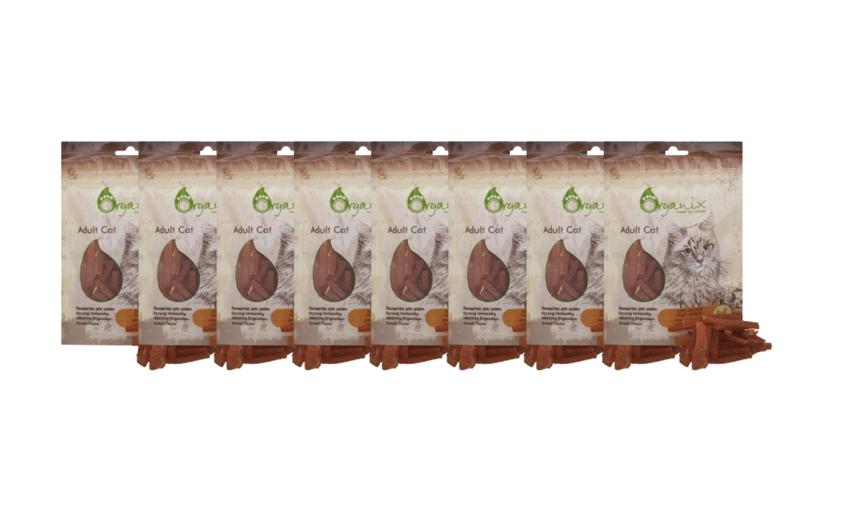Купить Organix лакомства Лакомство для кошек Нежная нарезка куриного филе 100проц. мясо (Soft chicken fillet shreds) 02им22 0,050 кг 20574 (8 шт)