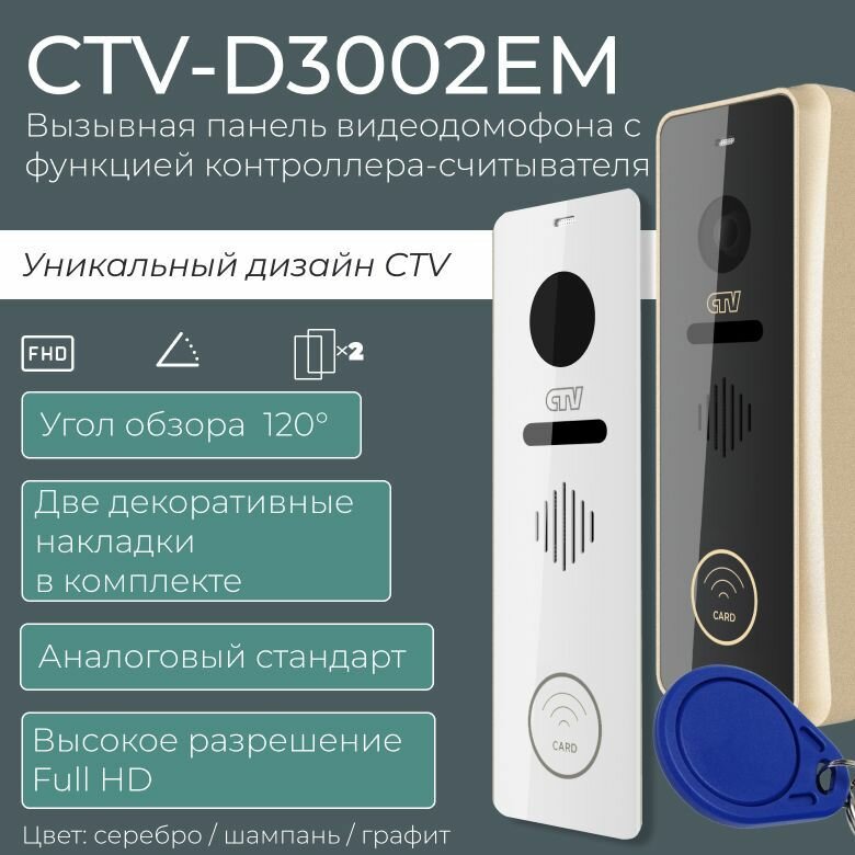 Цветная сенсорная вызывная панель со встроенным считывателем/контроллером для видеодомофона CTV-D3002EM ch