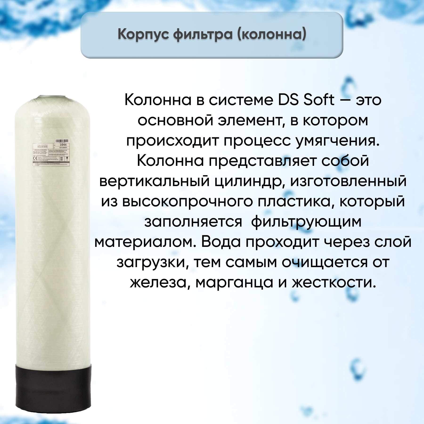 Автоматический фильтр умягчения, обезжелезивания воды DS Soft Standart 1044, под загрузку, для дома и дачи. Потребители до 3 человек.