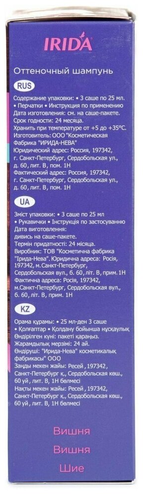 IRIDA, Шампунь оттеночный, Вишня, 75 мл