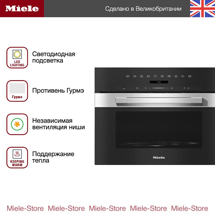 Встраиваемая микроволновая печь Miele M7244TC EDST/CLST, на 1600 Вт, объем 46 л, нержавеющая сталь CleanSteel интересное: