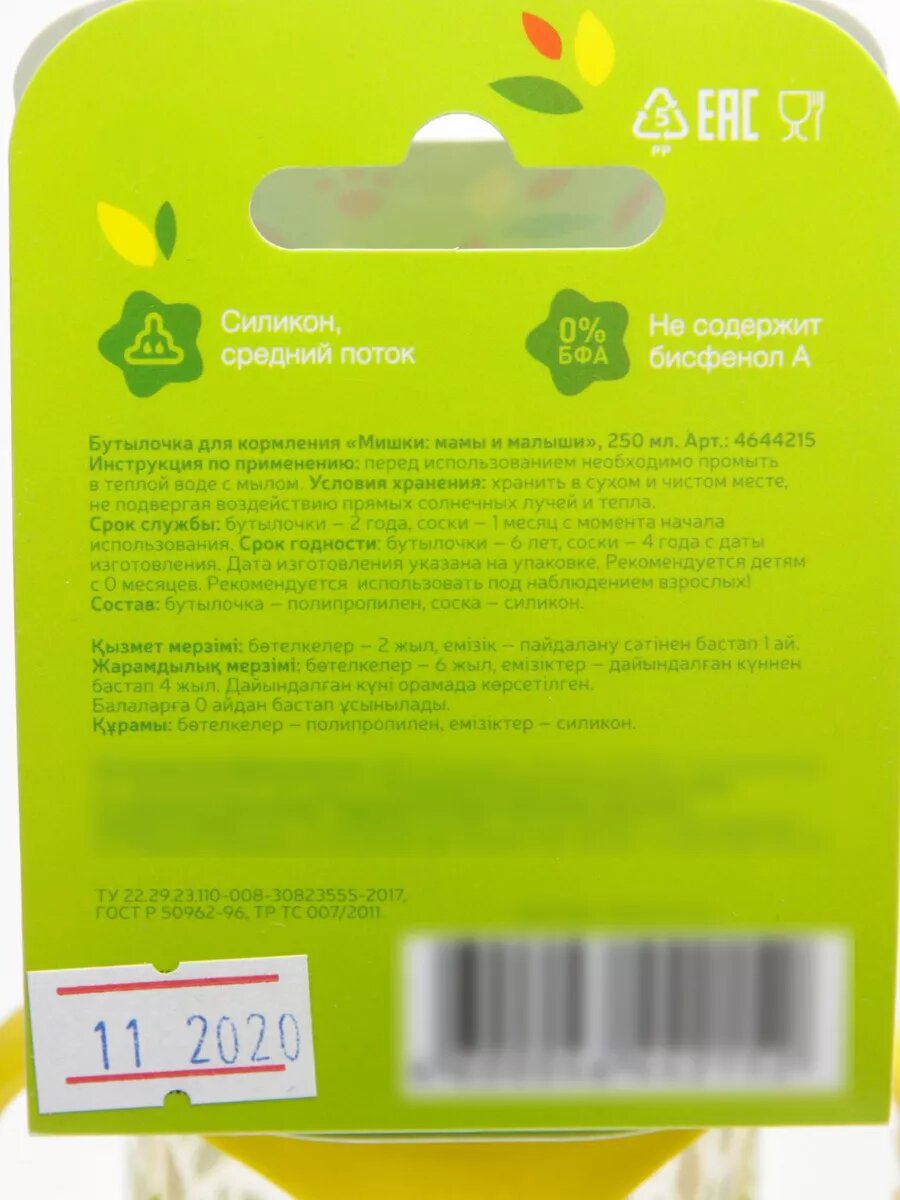 | Материал соски | силикон |