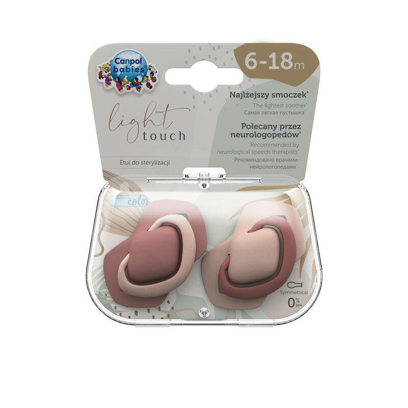 Пустышка силиконовая симметричная Canpol Babies Pure Color 6-18 мес., 2 шт., розовый