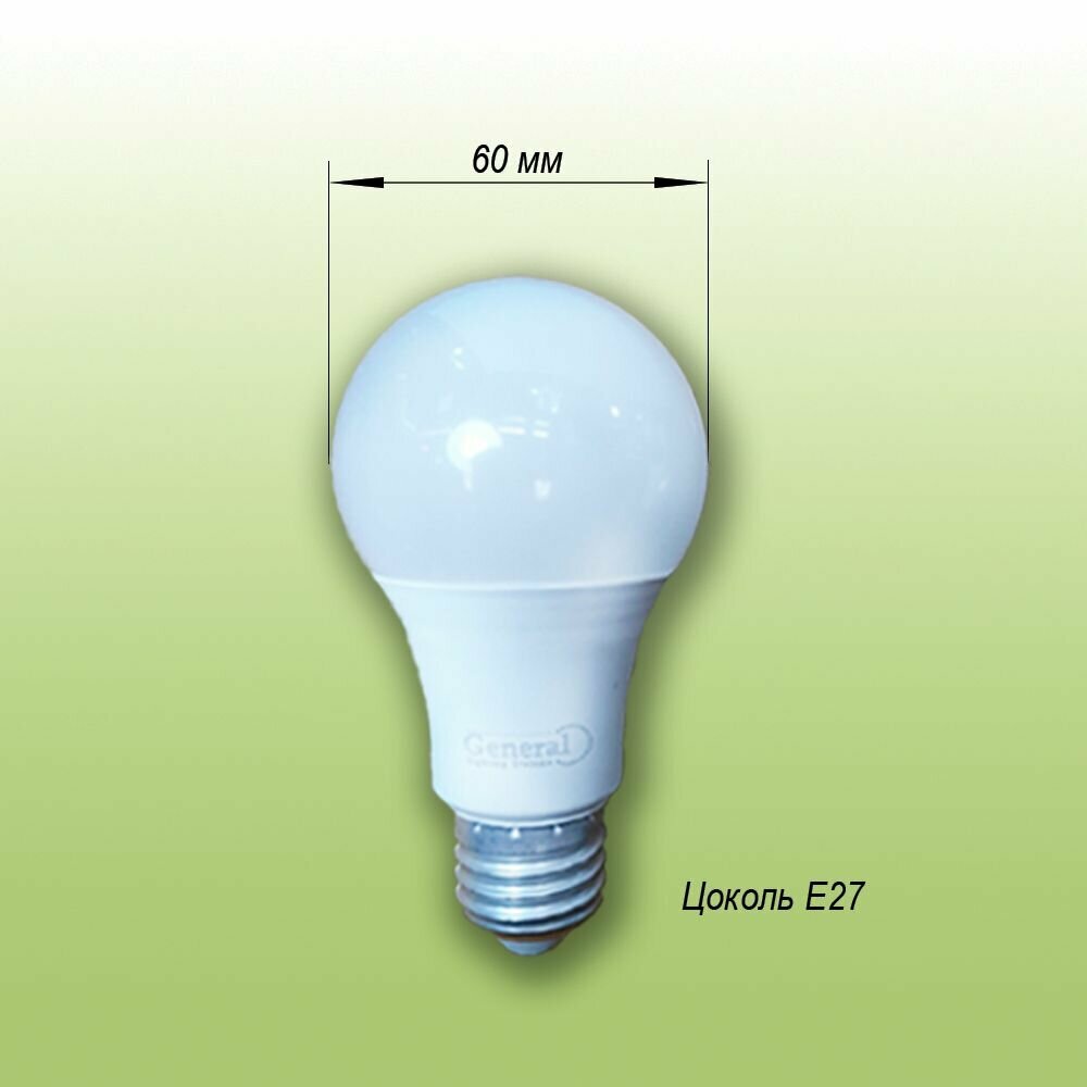 (10 шт.) Светодиодная лампочка General ЛОН A60 E27 11W 4500K 4K 60x110 пластик/алюмин. 636800