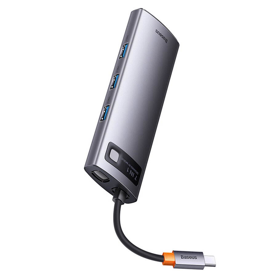 Хаб Baseus Metal Gleam Series 7-in-1 Type-C - 3xUSB3.0+ 2*HDMI+PD+RJ45, серый (WKWG040113)