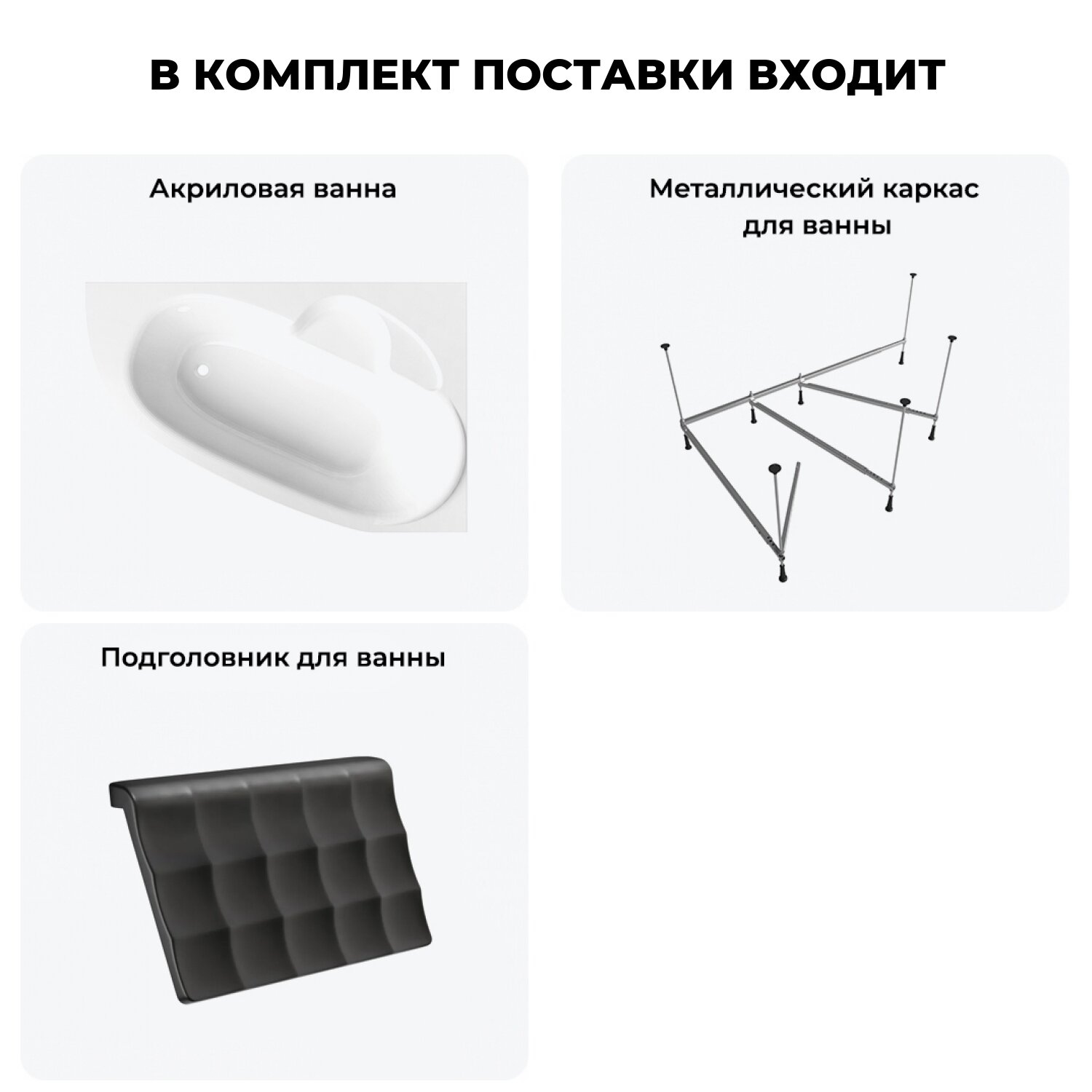 Акриловая ванна 150х100 см Lavinia Boho Bell Pro набор 3 в 1: угловая ванна (левый разворот), металлический каркас, подголовник